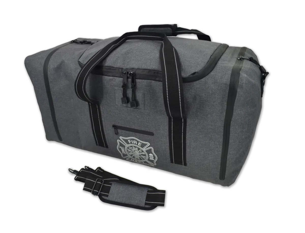 All seams on the main compartments of the bag are heat welded, so there are no stitches that penetrate the bag to allow air or particulates to escape (think: moisture barrier on turnout gear). Since the fabric is waterproof, the inside and outside can be cleaned and washed out with a hose to remove any remaining contaminants after the dirty turnout gear is removed and washed.