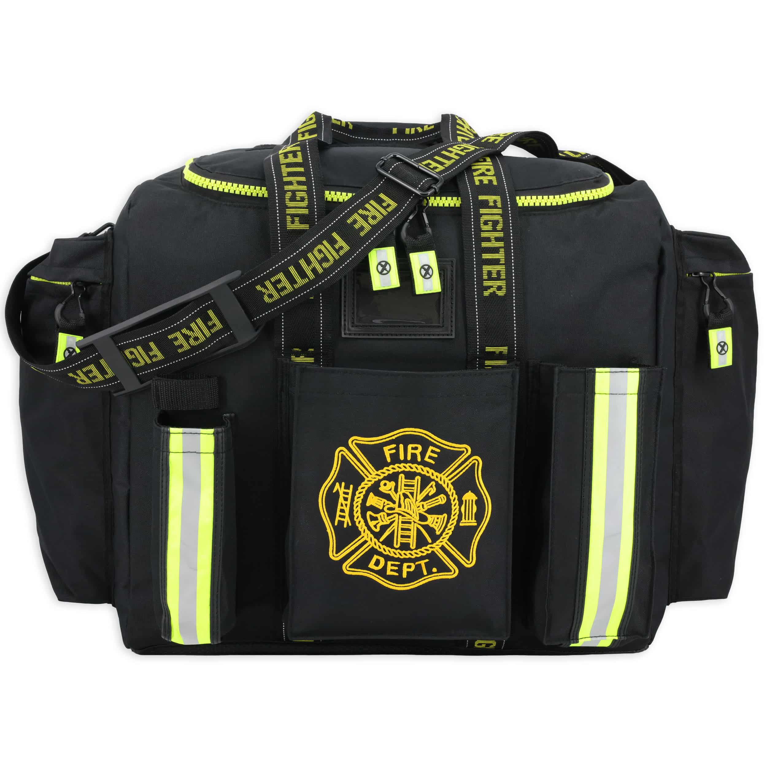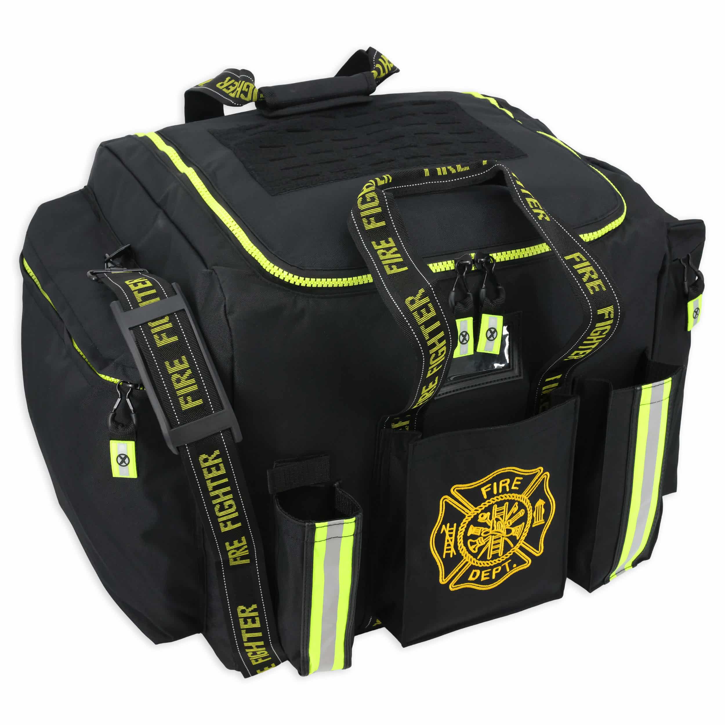 Premium Rigid Padded Step-In Turnout Gear Bag w/ Reinforced Bottom, Side Accessory Pockets, Shoulder Strap & Front Operations Pockets