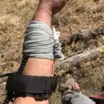 I do a lot of backcountry hunting, miles away from anyone. On a recent trip, I dropped a good 6×5 about 4 miles from camp. As I was quartering him out, my knife slipped and I lacerated my left forearm, severing my radial artery. With that type of injury and blood loss, seconds matter . . . You can pass out in as little as 90 seconds and expire in under 4 minutes.