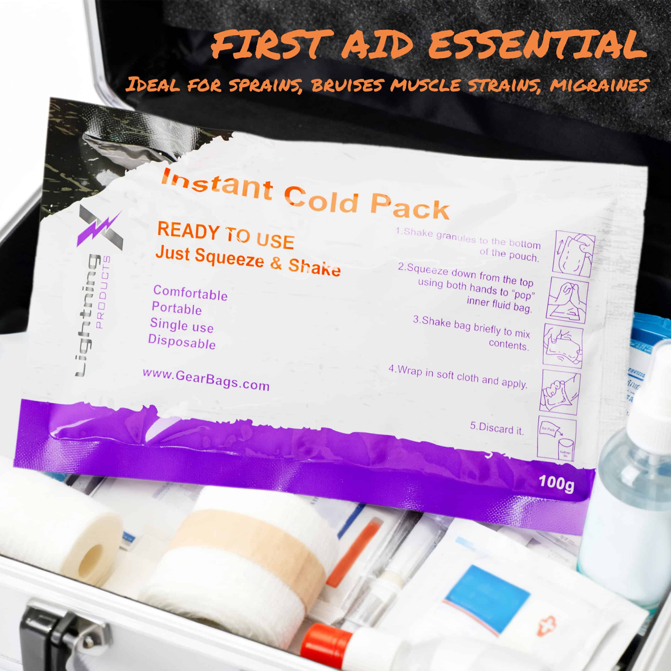The Lightning X Instant Cold Pack provides fast, mess-free cold therapy for sprains, bumps, swelling, and minor injuries. Just squeeze to activate—no refrigeration needed—and the pack cools to approximately 35°F for 10–15 minutes. Available individually or in a box of 20, these compact, disposable ice packs are perfect for first aid kits, sports, travel, and emergency use.
